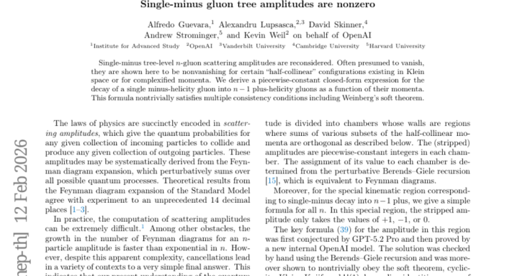 这项议论最令东说念主瞩策划极少是东说念主工智能在发现流程中表现的关键作用。议论团队泄露,描绘单负胶子散射的中枢公式(论文中的公式39)来源是由GPT-5.2 Pro"推断"出来的,然后由OpenAI的另一个里面AI模子进行了严格的数学阐述。