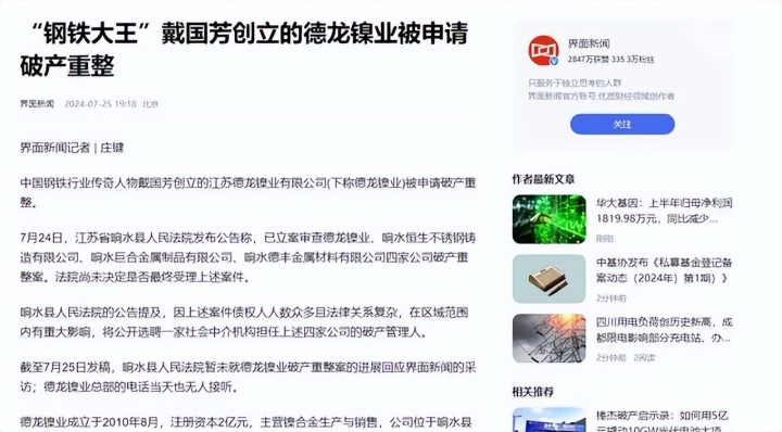 典型例子等于德龙镍业,这家曾是民企500强的千亿级钢企,首创东谈主戴国芳从捡废铁起家,膨胀贪心大,但两次栽跟头。