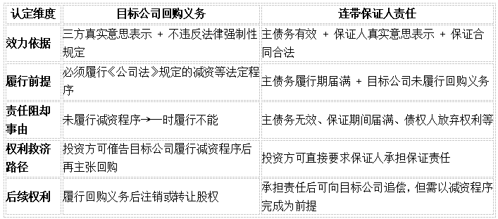 (三)方针公司回购义务与连带保证东谈主背负中枢因素对比